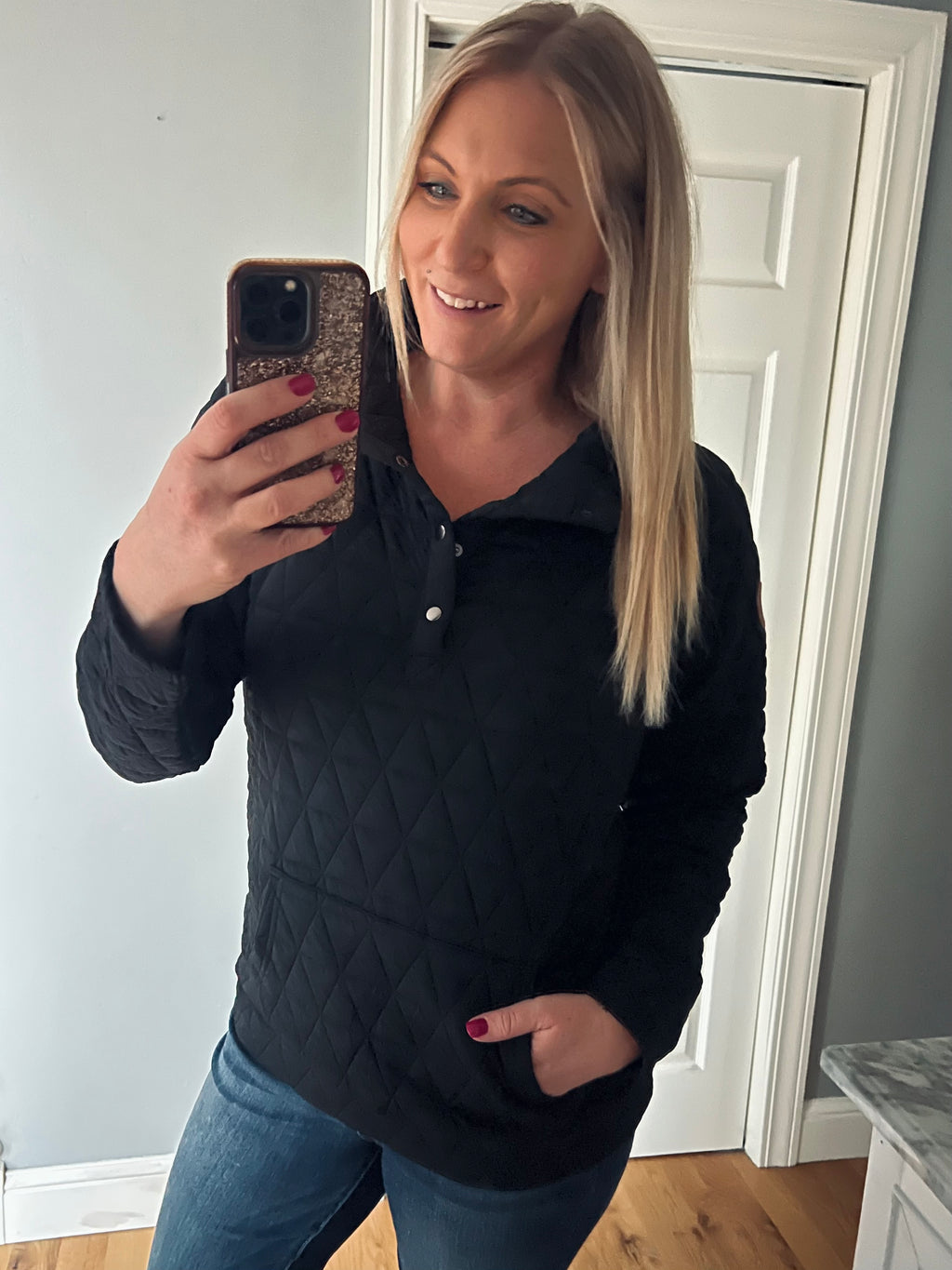 The Geometric Button Snap Pullover in Black