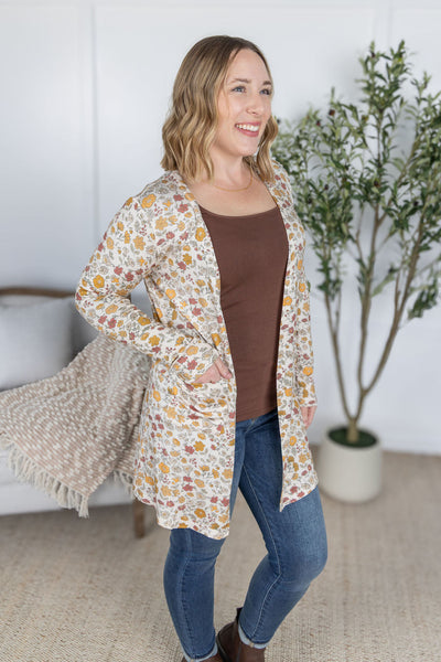 Upgrade your fall wardrobe with our Classic Cardigan in this classy fall vintage floral. Its timeless design and cozy pockets make it a must-have for the season. The open style and stretchy fabric provide both comfort and style. Pair this with all your favorite solid dresses this fall.