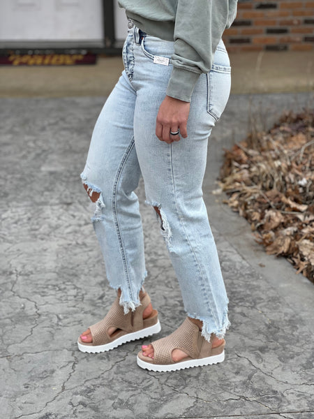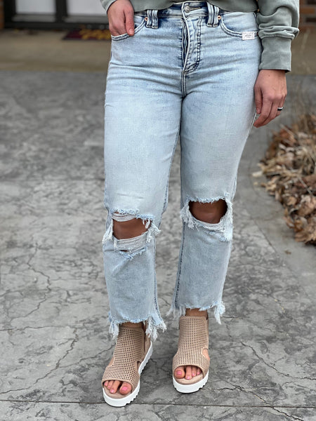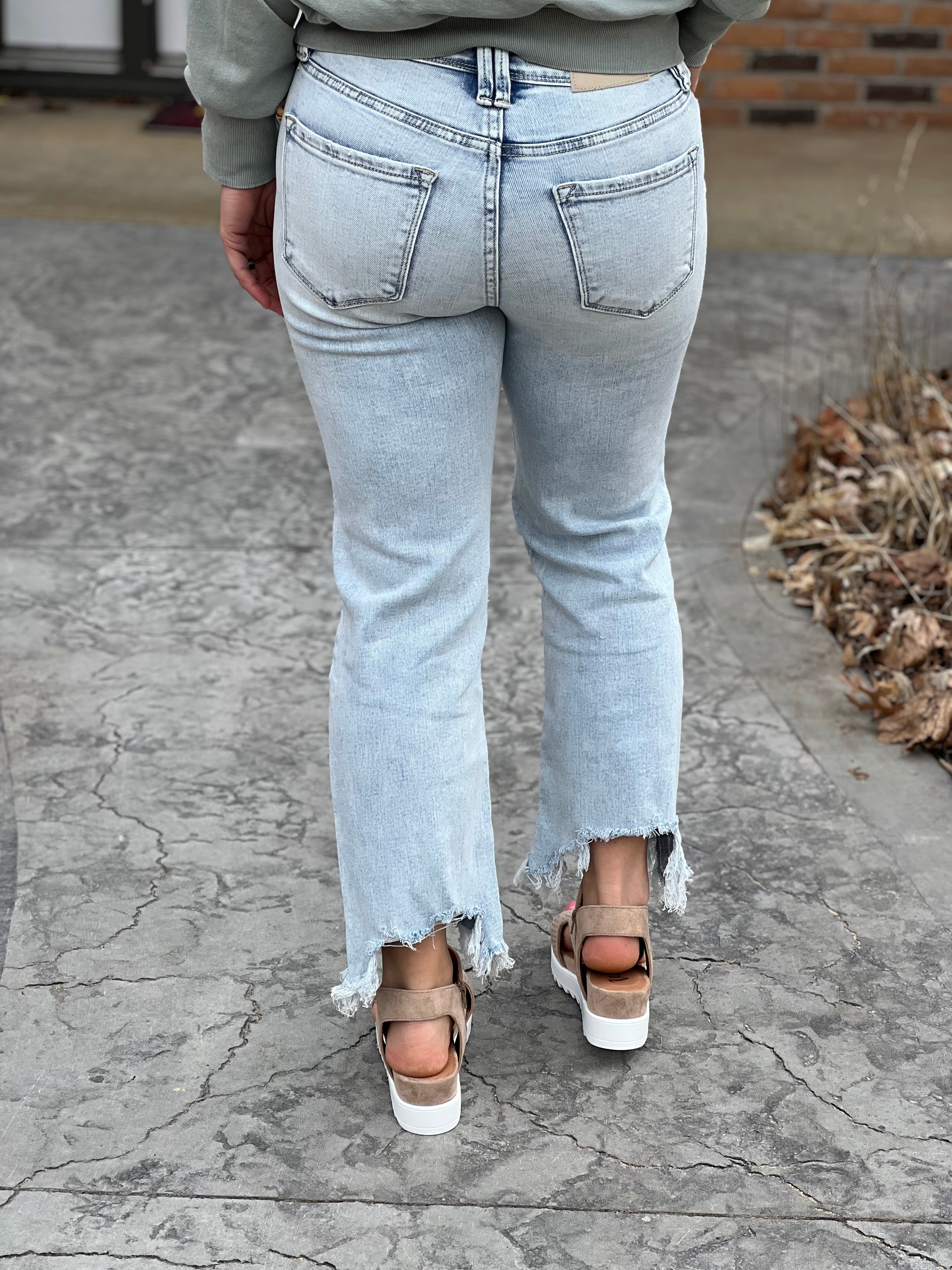Alas we have found these Hidden Gems! Ankle length with super stretch denim, these light was modern straight leg jeans are everything you are looking for! With hidden tummy control (by securing the pocket lining to the J-stitch, this construction helps to flatten and shape the midsection while maintaining a natural and comfortable fit), this pair of jeans enhances your silhouette and provides the structure and support you need for all-day confidence. These offer a hidden button fly look, a bootay enhancing fit, and overall stretch and comfort that you rarely find from a pair of jeans! If you want a more locked and loaded fit, you can wear you normal Judy Blue single digit number (ie 3,5,7, etc) if you want a more boyfriend style/trendy relaxed fit, size up 1 size.