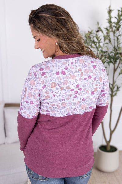 Meet Natalie! She's both sweet and sophisticated, while also being cute and cozy! This is made with your favorite triple stretch fabric and has a pretty floral and raspberry mix. A lightweight pullover that is fall perfection!