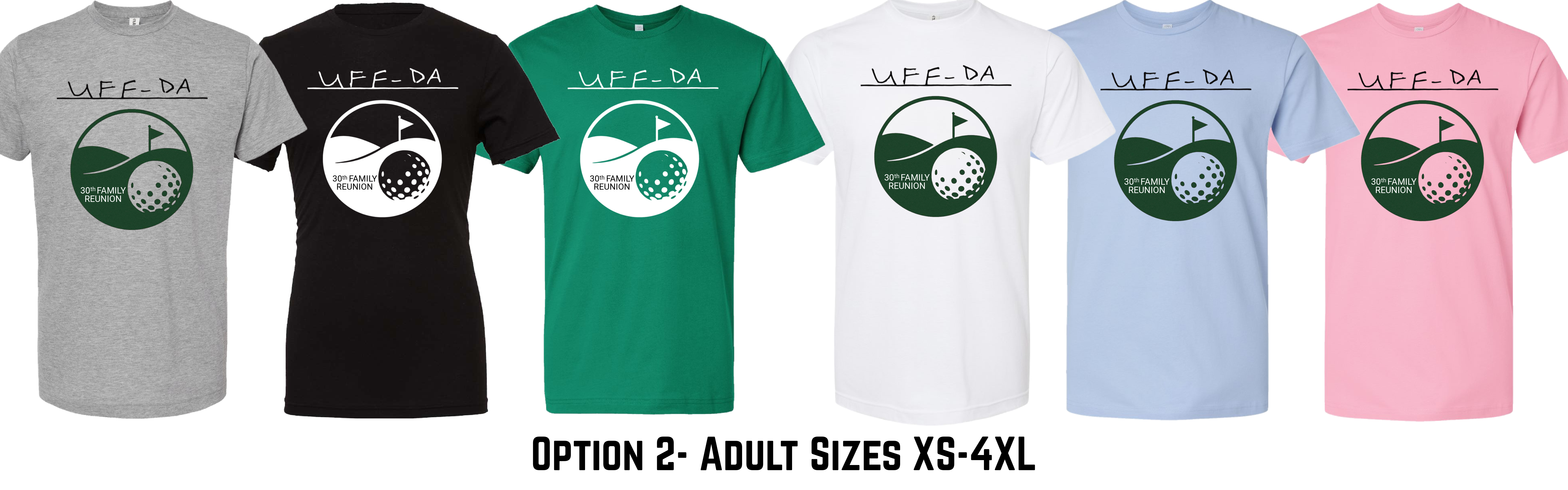Families have the option to have these shirts shipped to their home OR you can choose "pick up" as an option and Angie has agreed to pick your order up for you and bring them to the reunion. Please submit your orders by July 10 in order to have enough time for production and pick up. Thank you!